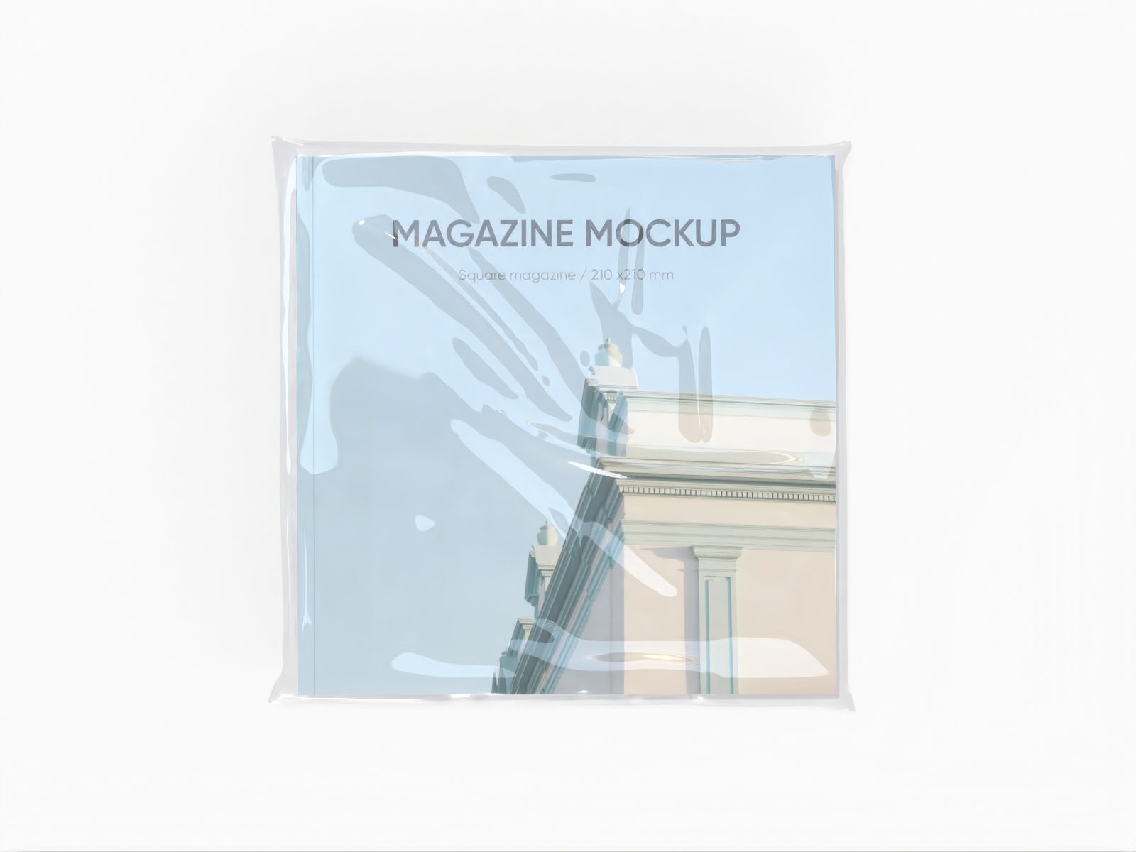 Square plastic wrapped magazine mockup